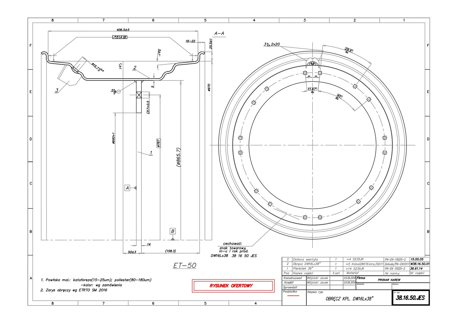 Velg DW16Lx38 (38.16.50.004) (787) ribaga S-ta RAL9006